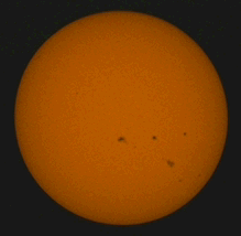 La fotosfera ha l'aspetto ora di reticolo luminoso, ora di granuli, interrotti da macchie (aventi diametro di 500-800km). Le macchie sono aperture superficiali di cavità profonde fino a migliaia di km occupate da vapori e gas in parte non luminosi; sono sede di grandiosi fenomeni dinamici, termici, magnetici, elettrici dovuti all'attività interna del Sole. Esse di spostano dal margine orientale (sinistro per chi guarda il Sole nel nostro emisfero e avendo il Nordo alle spalle) verso ovest. Ciò ha permesso di affermare il movimento di rotazione del Sole da Ovest ad Est intorno ad un asse che è quasi perpendicolare al piano dell'orbita terrestre e che avviene in un periodo di 25-34 giorni nostri e precisamente: rotazione all'equatore in 25 giorni, ai poli 34 giorni.