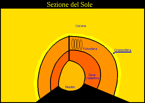 Nulla si conosce sul nucleo solare, perciò le indagini si limitano alla fotosfera, che è la parte luminosa a noi visibile e all'atmosfera che la circonda e che può essere esaminata durante le eclissi, quando cioè la Luna copre la massima parte del disco solare e perciò l'atmosfera non è più abbagliata dalla fotosfera. Concludendo, la struttura solare si può chematizzare così: